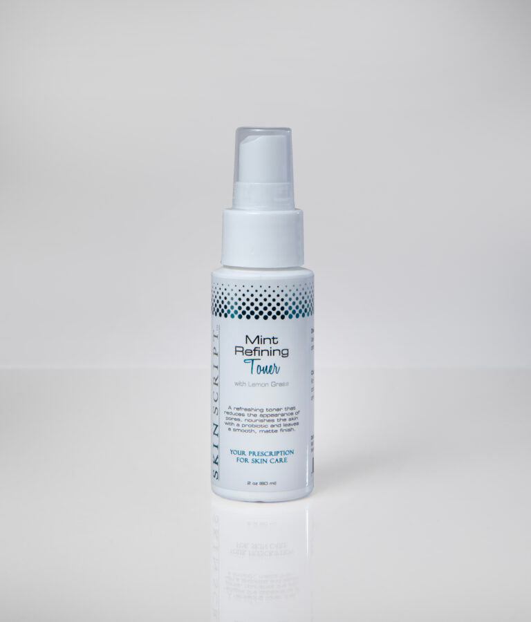 Skin Script's Mint Refining Toner is crafted to refine pores, balance skin, and support a clear complexion. Featuring BioFense, a potent probiotic, it helps normalize skin flora, reduce redness, and strengthen the skin’s barrier with antimicrobial support. DisaPore20 and lemongrass provide natural astringent properties to visibly minimize pores, leaving skin feeling smooth, refreshed, and healthy. Ideal for normal to oily and acne-prone skin, this toner ensures balanced hydration and a renewed, refined look.